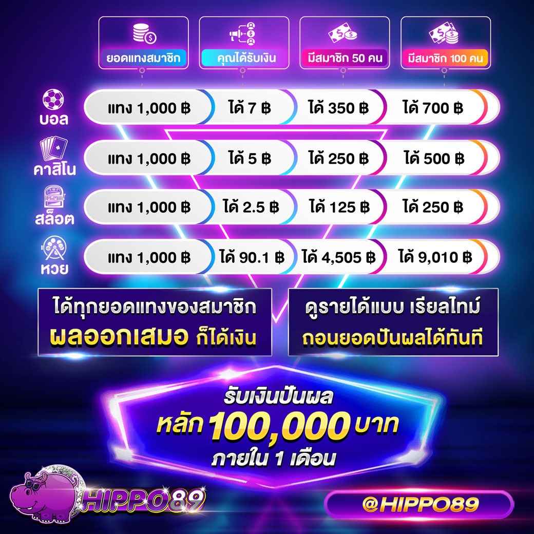 สุดท้ายนี้ โปรโมชั่นและโบนัส คือเครื่องมือช่วยเพิ่มมูลค่าทุน Hippo89 มักมีข้อเสนอสำหรับสมาชิกทั้งใหม่และเก่า แต่อย่าลืมอ่านเงื่อนไขให้ดี โดยเฉพาะเรื่องการถอนเงิน เพราะบางโปรโมชั่นอาจมีข้อกำหนดที่ต้องเล่นให้ครบเทิร์นโอเวอร์ก่อน